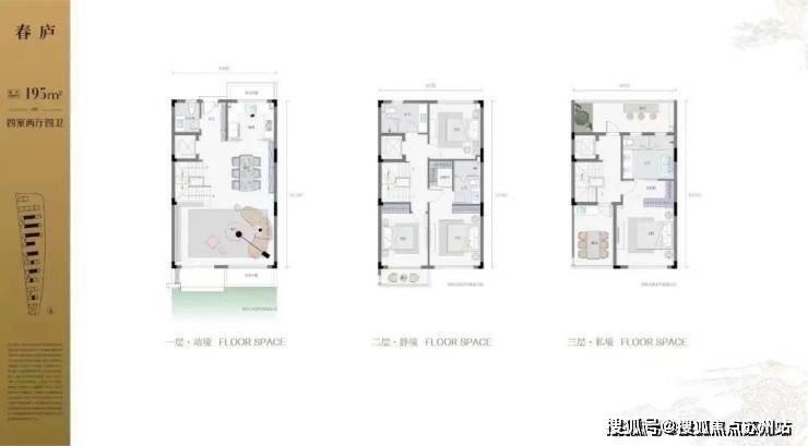 建面约195方的城市排屋,整体4室2厅4卫,地下2层地上3层,南北双花园设计。此外还有独家私密花园和南向超大会客厅。2层是双套房设计,并且南向带有独享露台。3层行政套房设计,并带有南北双露台。