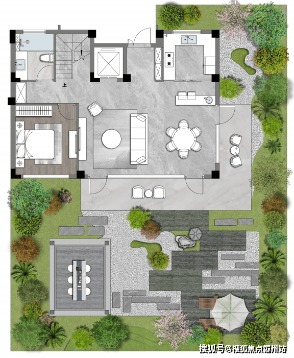 向外延伸出去是一个可以养花、喝茶的院子:别墅的真意义就在院子!这个户型花园横向约9.3米,休息时一家人可以在院子里喝茶养花,方能感知别墅生活的美妙;