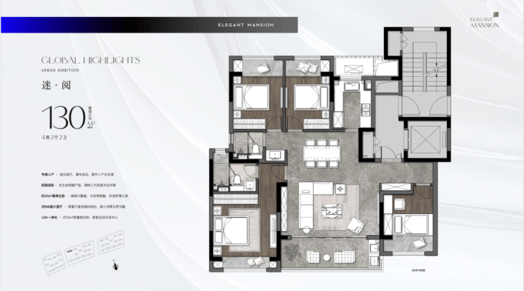 约130㎡ 就能做到正四房,南北通透,还有独立电梯入户,私密性非常好,是功能性与舒适性兼备的精装洋房优选。