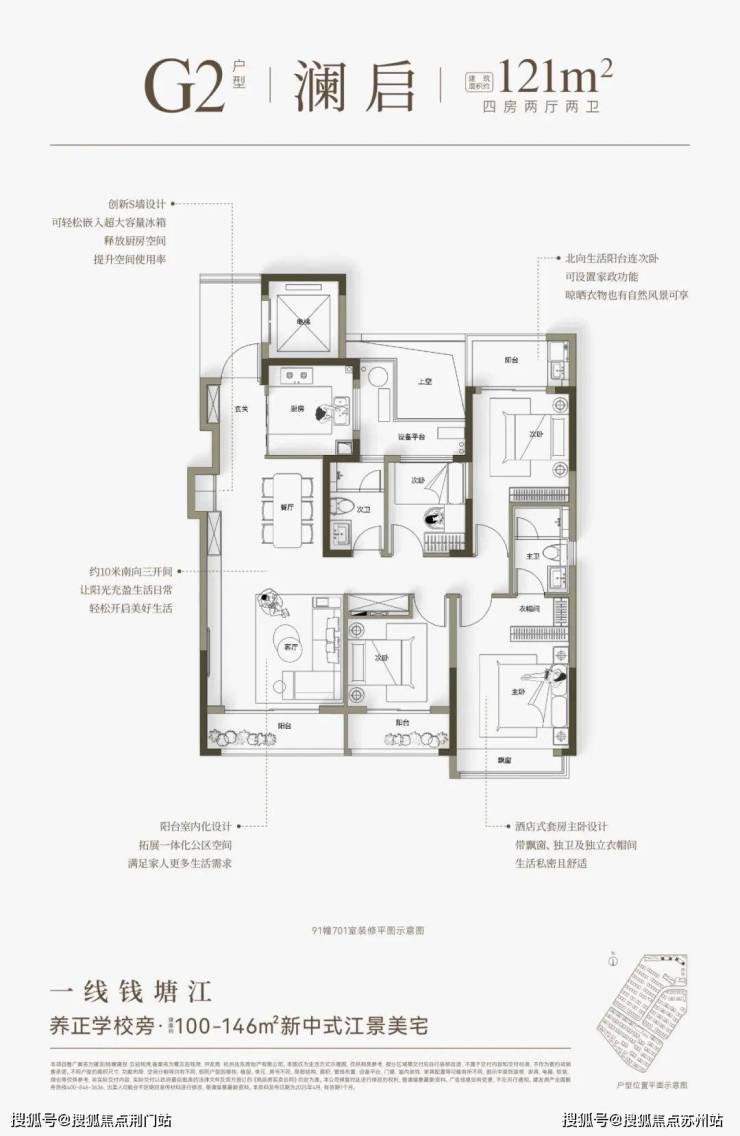 建面约100-146方宽宅,最大化瞰江、景观、采光、通风等,不仅尺度奢适,而且总价可控。