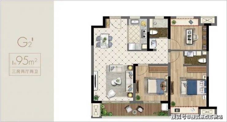 在房间的设计上,一层是餐客厅的设计、大横厅加一个卧室。另一层是三房两卫,两个卧室向南。3套房的设计,都标配了独立卫浴、步入式衣帽间,无论是从空间尺度还是房间分配上都能轻松碾压大平层,无论是三孩家庭还是三代同堂都可以欢聚一堂。