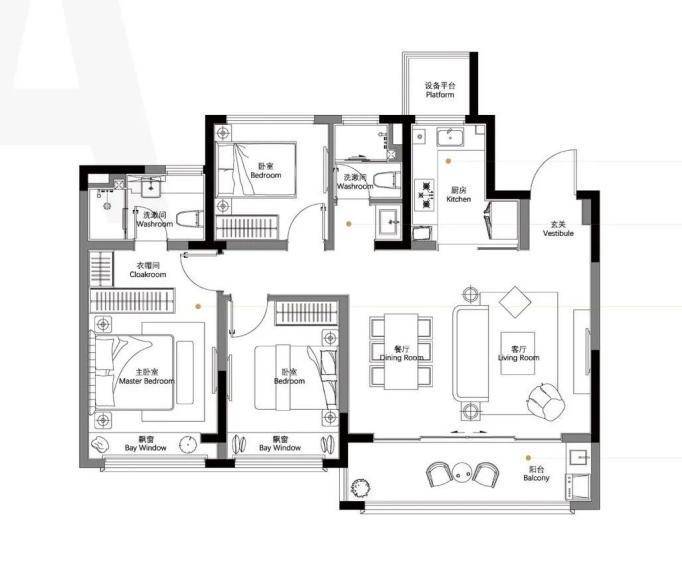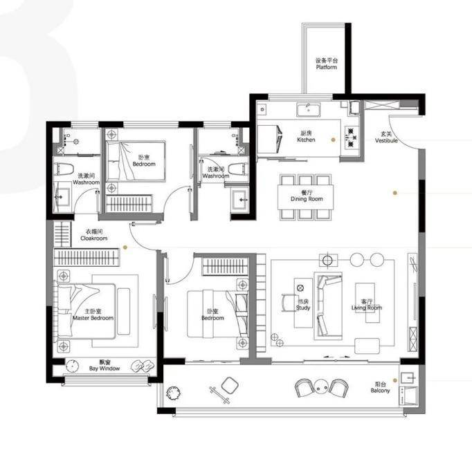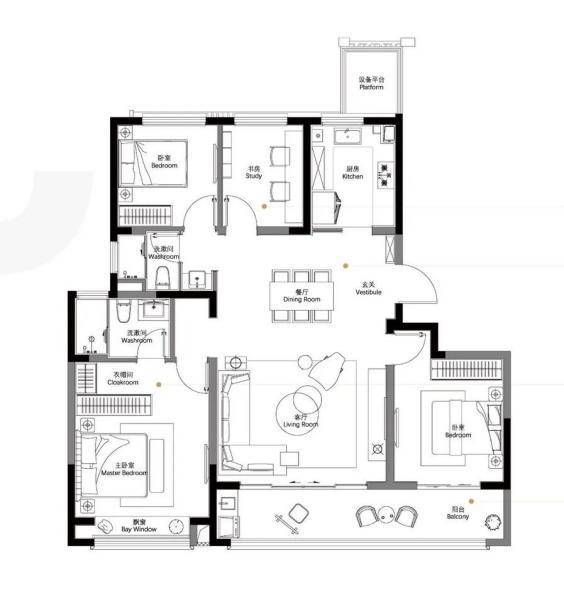 约110㎡三房两卫:上车科技城仁恒的最低门槛,功能齐全,年轻人第一套够用了。