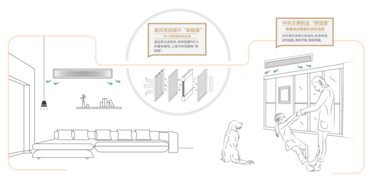 标配新风系统+中央空调,时刻呼吸新鲜空气