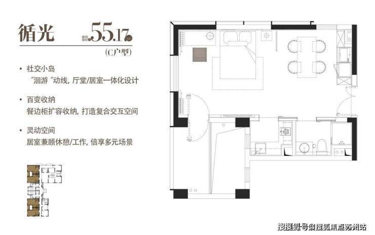 C|循光|建面约55.17m²|一室一厅一厨一卫