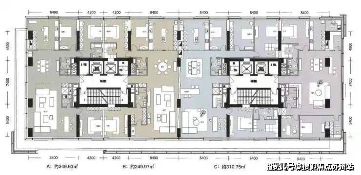 • 面 积:200.96㎡-𝟐𝟓𝟎.𝟏𝟒㎡(交付三房两厅三卫)