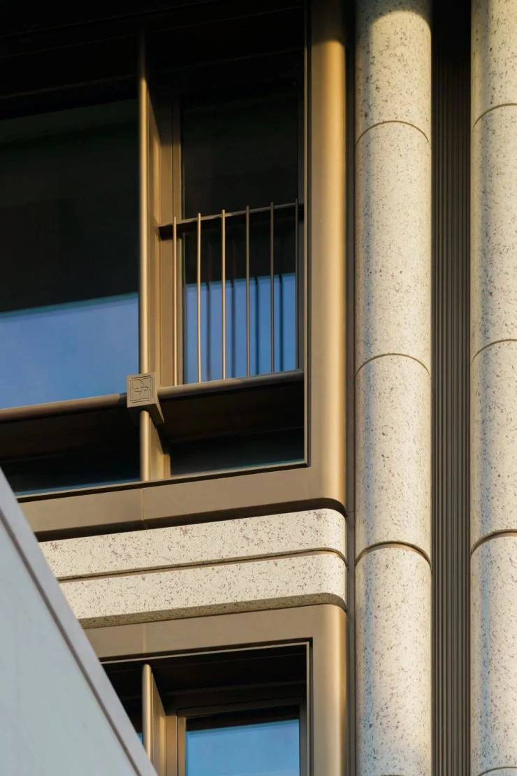 项目立面主材采用沙漠风与白海棠石材,视觉温润,同时石材立面更耐用,经受得起风吹雨打,历久弥新。
