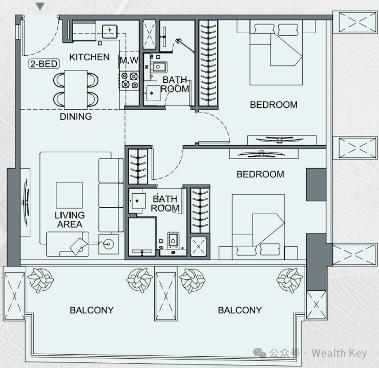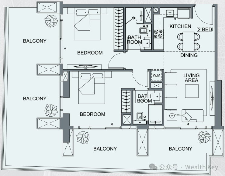 Etherea社区中为每位投资者提供了开间(Studio)到两居室的丰富户型选择,您可以根据您与家人的需求选择最满意的户型。