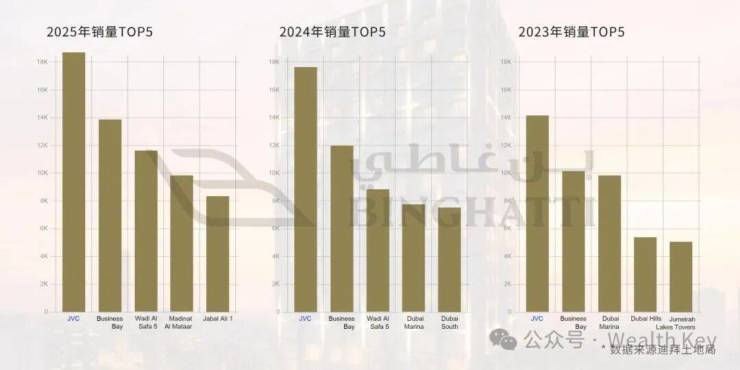(1)交易量蝉联榜首:根据迪拜土地局数据,JVC2025年成交18,690笔,蝉联榜首。市场需求旺盛;
