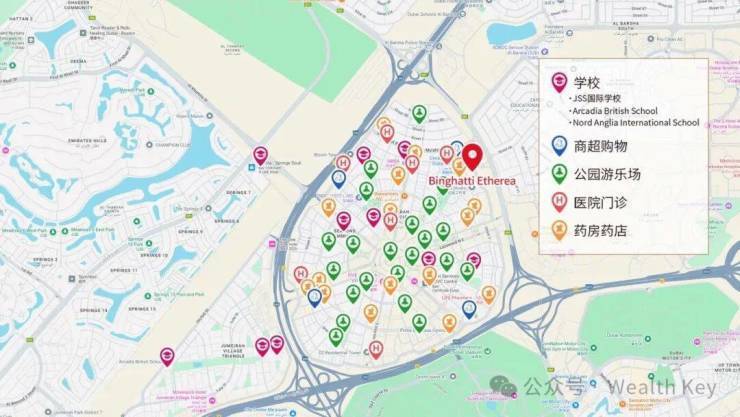(4)交通升级:迪拜交管局(RTA)宣布JVC新增出入口,HessaStreet双向各增哈2条车道,与AlKhailRoad交汇的新交叉口设双车道匝道,北向直通沙迦。JVC区通行时间将缩短70%;