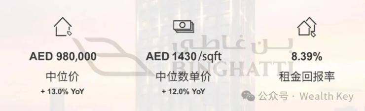 (2)租金回报率亮眼:2025年JVC平均租金回报率达8.39%,2026年1月达到9%,远超许多国际都市。2025年平均单价AED1,430/平方英尺,同比增长超12%,价格稳健增长;