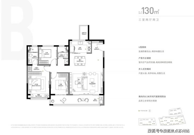 1.建面130㎡3居
