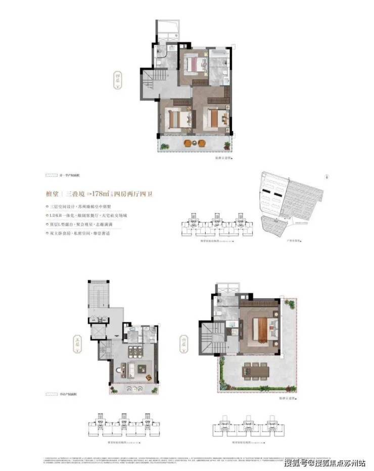 一体化设计,三开间或四开间朝南,主卧套房设计,卧室带飘窗。叠墅如三层叠加别墅为四房两厅四卫,三层空间设计,有