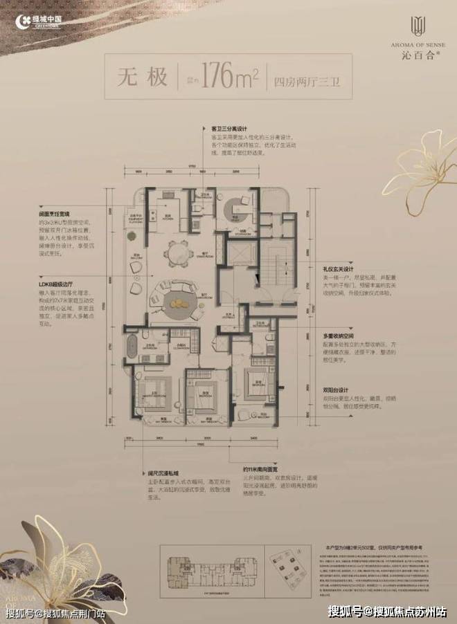 繁华深处百合香,饱含对市中心的新思考,杭州沁百合将未来生活的情景,精心嵌入于全维实景示范区之中。杭州市中心800万级,建筑面积约155~176㎡绿城改善作品,等待赏花的你