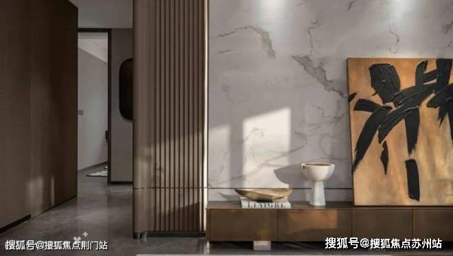 “百合归庭”单元门厅,同样以“蓝瑛照壁”为模板精心营造,以文化与艺术的融合,升级归家体验。