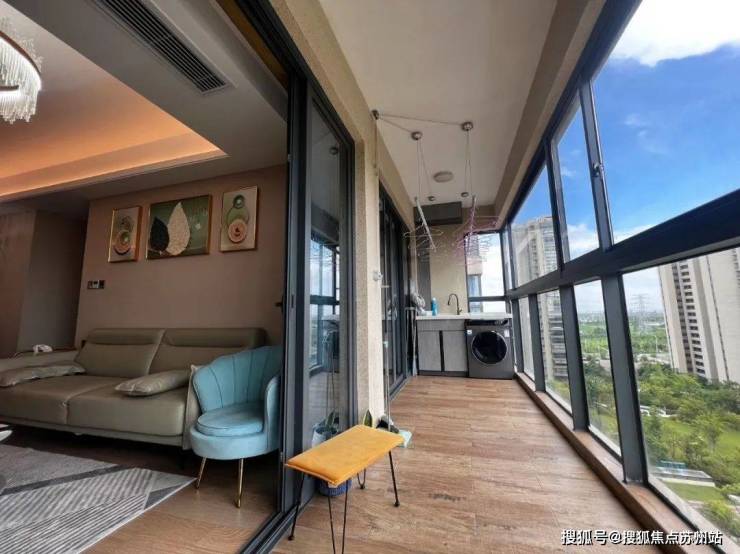 客厅整面落地窗在视觉和体验中串联了内与外,最大限度摄取室外自然光线和窗外自然之景,引景入室。