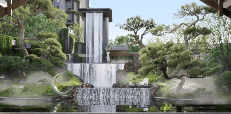 借约7.9米高差,打造约12米流水飞瀑,整体形成"一环一轴两园四巷"的景观体系。约70米长卷式山水城市界面、双大堂规制,苏博风格定制馆藏、约1500㎡全龄主题场景,把"拙政园"的意境搬进了自家小区。