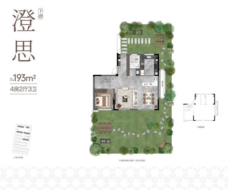 约193㎡下叠,专属庭院接地气 拥有步入式的南向庭院,真正实现“院子情怀”。客厅尺度宽奢,招待客人很有面子。南向四房的设计,充分考虑了家庭成长和代际居住的舒适性,提供了独特的低密墅区生活体验。