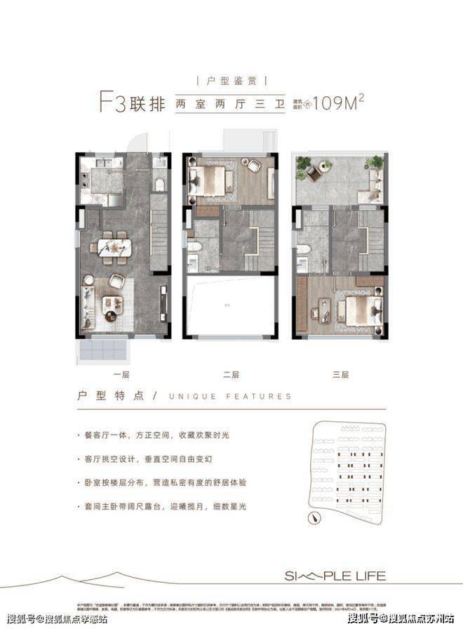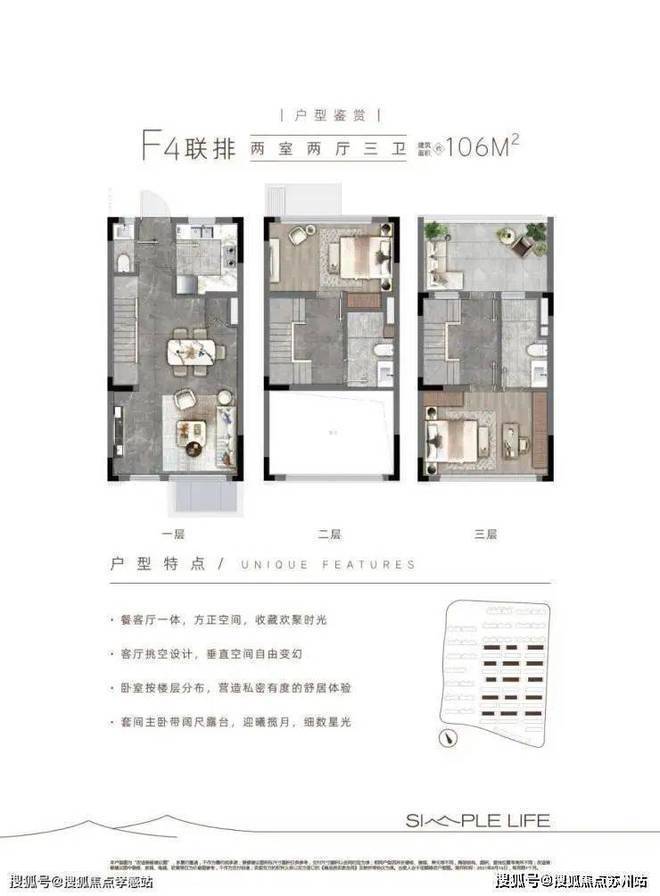 层高:洋房2.9米,联排客厅挑空约6米