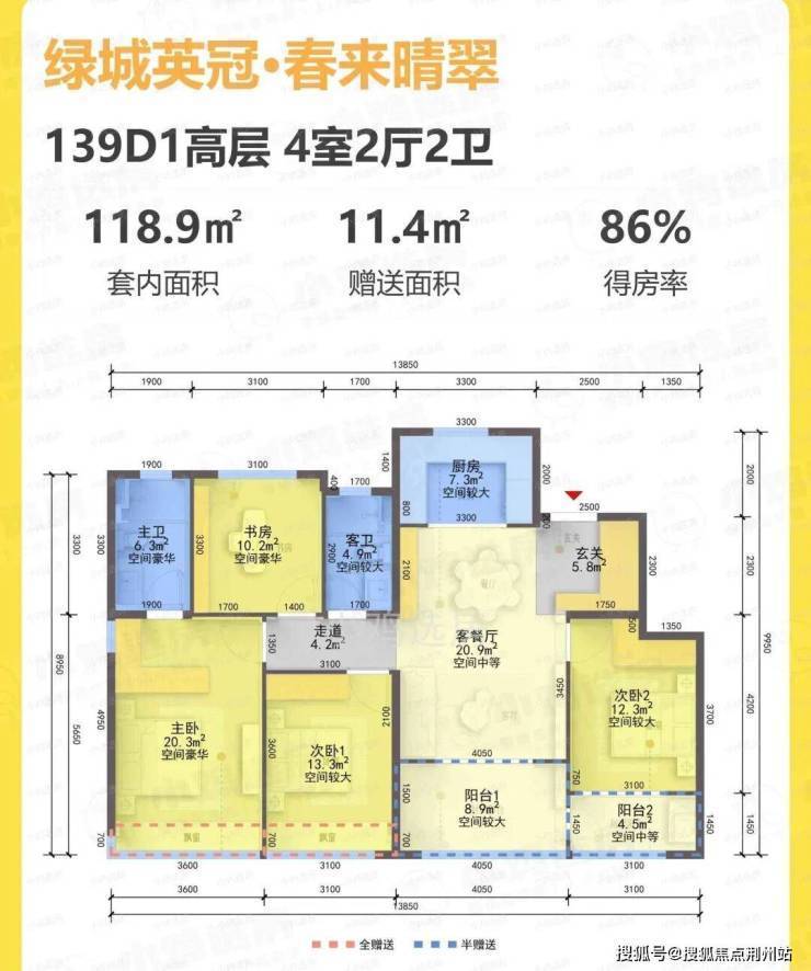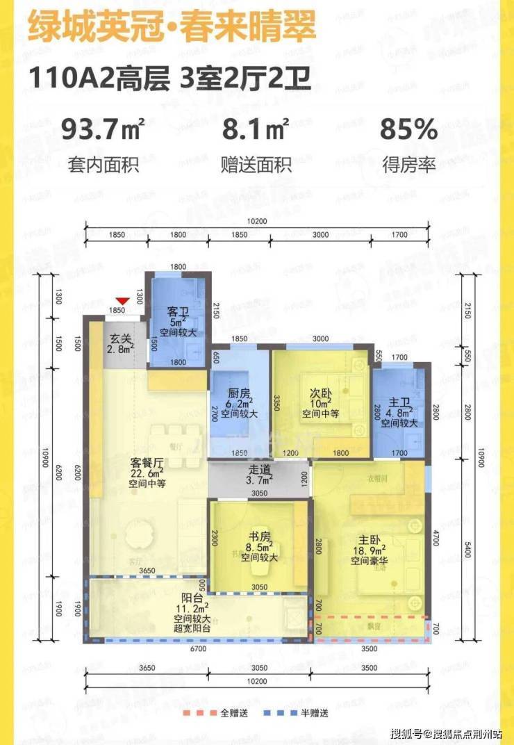 户型特点:三开间朝南,阳台尺度较大,得房率不高.