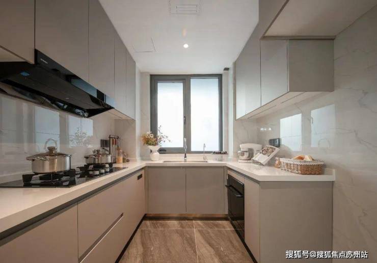 建面约310㎡的边套,首层南向横厅面宽就达到了约6.9米,厨房面宽约5.5米,可以阔绰地分出中西厨;