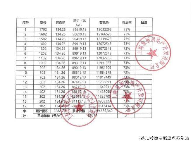 本批次一房一价表如下