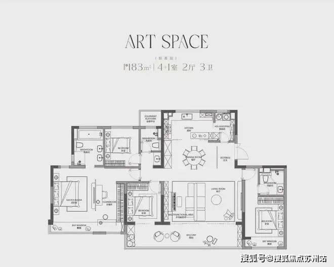 布局合理得房率高,飞机户型,长辈间与之分离,彼此不打扰、更好地休息。