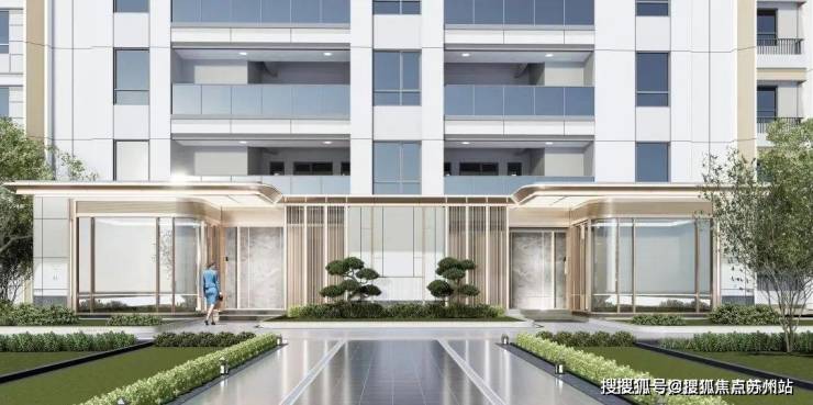 社区入口对标 慢奢酒店风格打造,融入高定细节,诸如酒店感仪式门头+环岛式尊崇落客+迎宾式花园设计+精装地库等。