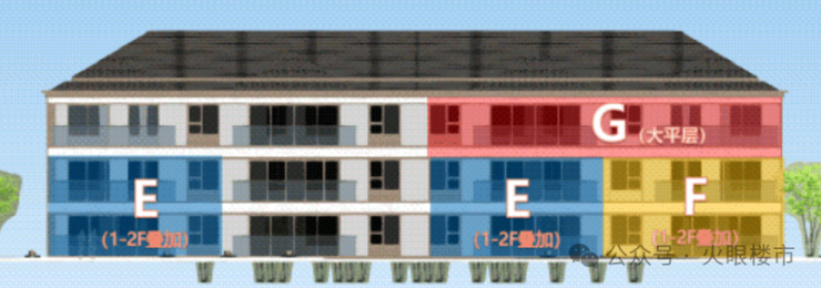同期推出少量“2+1”创新墅型。该产品采用垂直复合设计,首两层为左右对称的双下叠,第三层则整合为一个完整大平层。