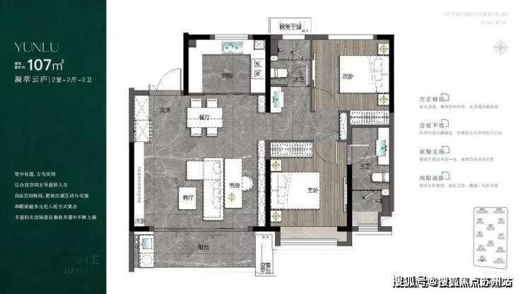 起步的约107㎡户型,放弃了主流的三房格局,而选择了大两房,坚守纯粹改善基因!