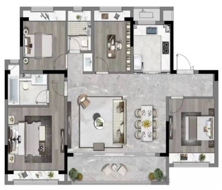 洋房C户型:建面约119㎡(四室两厅两卫)