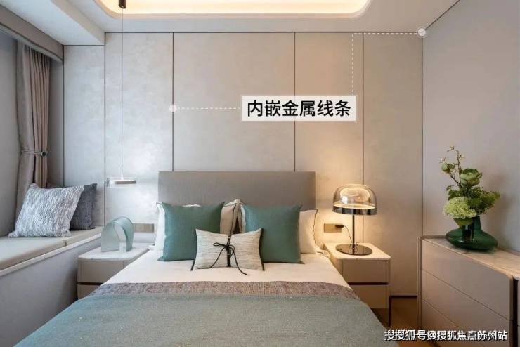 室内墙面及转角处内嵌金属线条。这些线条不仅是装饰,更在视觉上起到了延伸与过渡效果,让空间更具层次。
