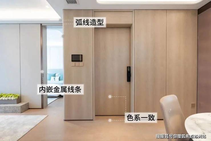 这一点实在难能可贵,毕竟在大多数样板间里,电梯厅和室内空间往往由于采购商与施工方的不同,导致风格、色系等方面存在割裂感。值得一提,一脉相承的色系让业主后期搭配家具也更容易。