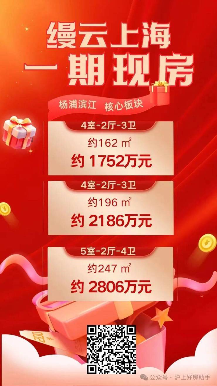 最新消息:杨浦滨江核心段,【缦云上海】一期已现房交付,少量162-247㎡房源在售,总价1752万起!三期推出约226-330㎡大平层&小洋房!总价约2500万起!准现房发售!可直接认购!