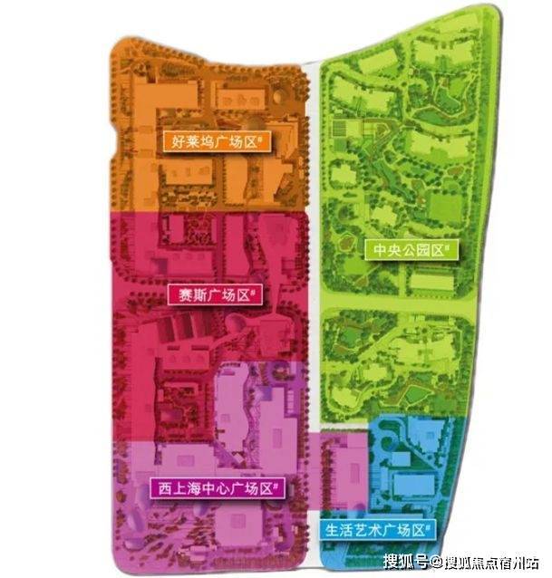 整个高尚领域划分成五大多元化生活主题:以住宅为主的中央公园生活区、提供娱乐设施的好莱坞广场区、设特色餐饮的赛斯广场区、设甲级商厦和星级酒店的西上海中心广场区,及适宜摆放现代艺术品的生活艺术广场区.