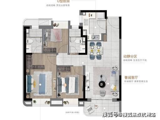 100㎡三房两厅两卫户型,刚需进阶主力,三开间朝南,南向面宽约10.2米,采光更充足.格局方正,动静分区清晰,入户玄关预留鞋柜收纳;客餐厅连通阳台,空间开阔;主卧套房带独立卫浴与飘窗,舒适度高;两个次卧实用方正,可灵活规划儿童房与书房;厨房U型设计,操作流畅,整体户型兼顾功能性与舒适度,317万起,性价比突出.
