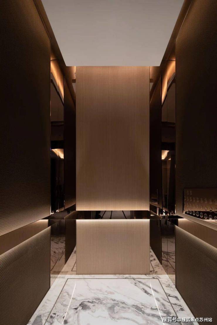地下室公区同样出自大师设计——美国CDI创意国际设计集团,下车坡道星空顶加流线型灯带,玫瑰金属包边,两侧的墙面同样采用进口奢石,质感非凡。停车场地面采用水磨石及环氧地坪漆,不仅耐磨性更强,也更有质感。双大堂设计,仪式感必须给到位!