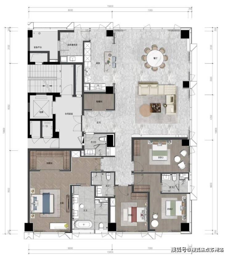 南向总面宽达到了24米!其中的会客空间,南向面宽就有约9.6米,面积约65㎡,还拥有270°转角采光的落地玻璃窗,室内设计,则由观云钱塘城的首席设计师金永杰,以及汤臣一品、嘉里逸庐的设计师吴滨旗下的世尊集团领衔,用深浅不一的灰与氤氲的水墨,调和出空间的层次感,低调映衬窗畔景致的豪奢。
