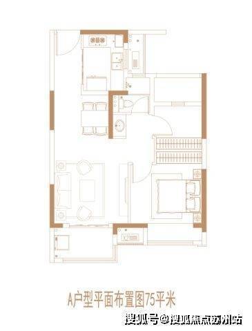 建面约75㎡2房2厅1卫: