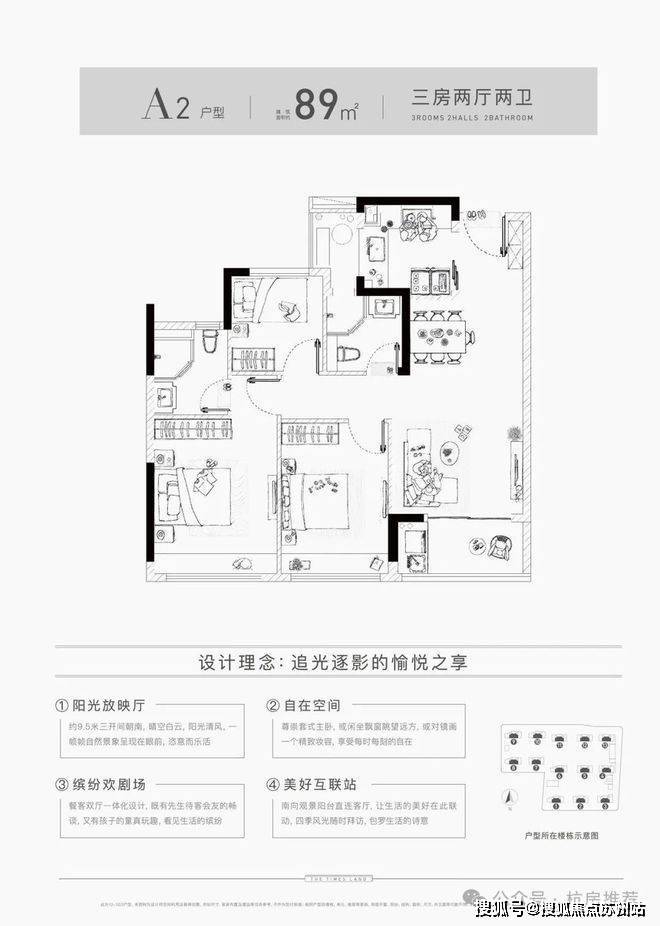 【面积段】:建筑面积约89-98㎡