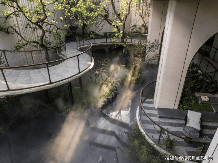 社区入口打造了约44米"玉阙迎辉"大门,用维纳多石材,配玉树飞檐与潘多拉奢石,红果冬青点缀,尽显尊崇与诗意。园林景观融姑苏山水意境,以风雨连廊串联景观,植文冠果、樱花等珍稀绿植,分设琢玉园、康养花园,实现全龄段自然互动与美学体验。