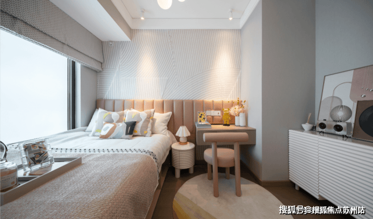主卧也颇具亮点,面宽达到约3.5米,飘窗的尺度很给力,进一步扩大了使用空间。