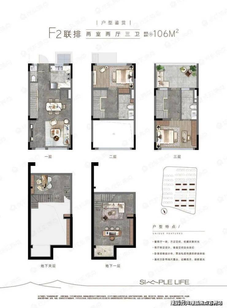 层高:洋房2.9米,联排客厅挑空约6米
