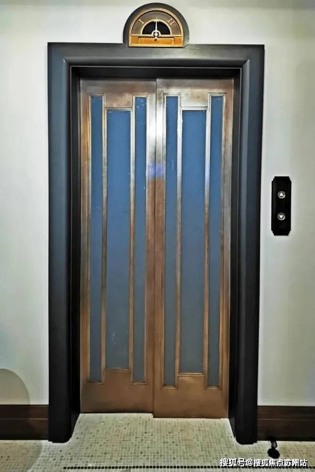复式户型自带电梯,电梯古铜色线条搭配黑色厚重外框;室内同时还配有旋转楼梯,木材来自东南亚柚木。