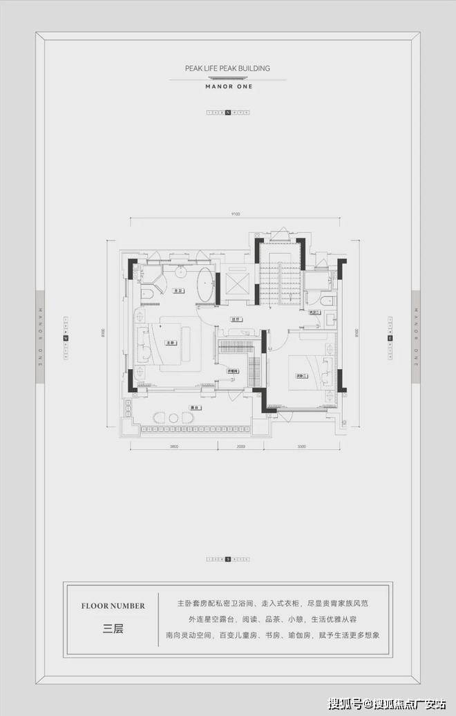 二三楼可以设计为次卧+次卫+超大套房的功能布局。套房中,放得下浴缸的卫生间和走入式衣帽间,才是「享受生活」的最佳标准。而南向的景观露台,则是赏花观景、沏茶品茗的私享天地。