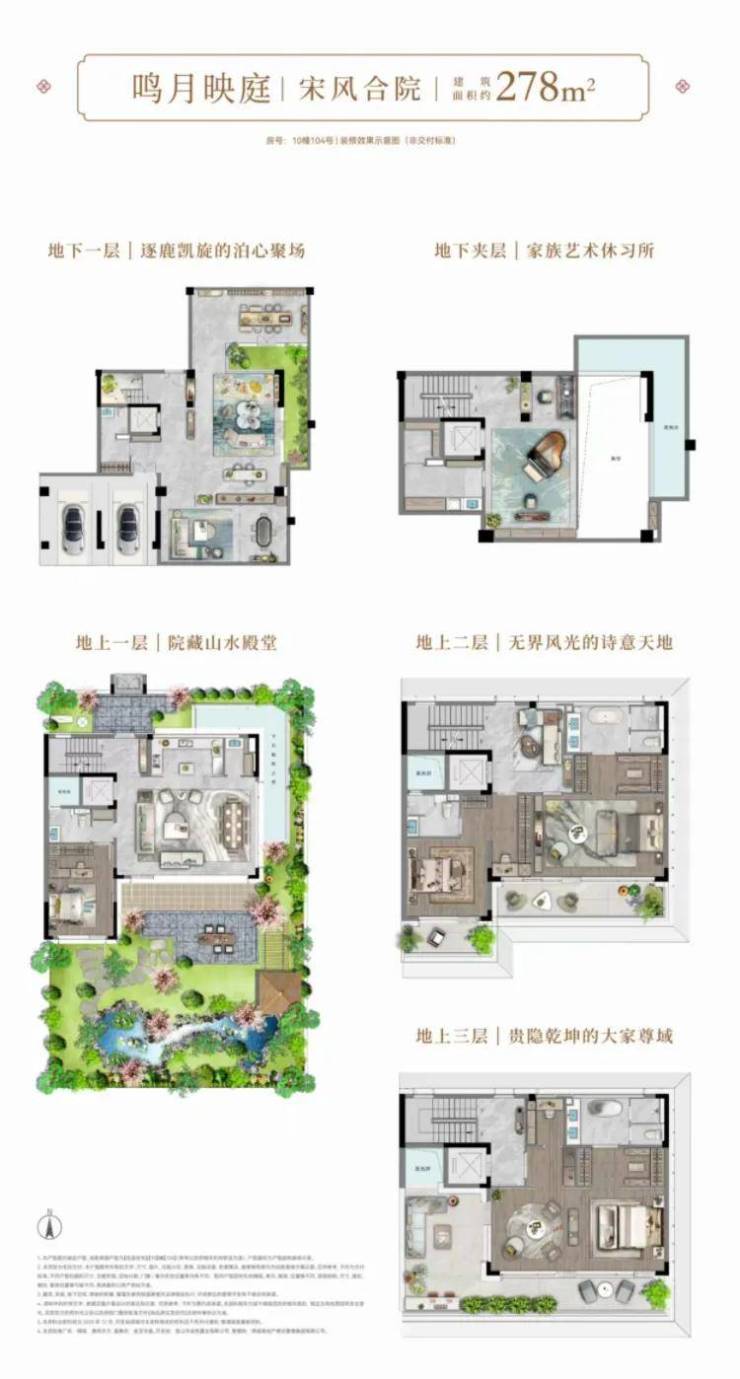 项目打造建面约235-350㎡宋风合院、建面约149/178㎡四代宽幕平墅的产品户型。