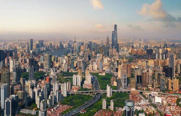 东瞰:延中绿地公园葱郁铺展,新天地繁华与陆家嘴“三件套”天际线同框入画!
