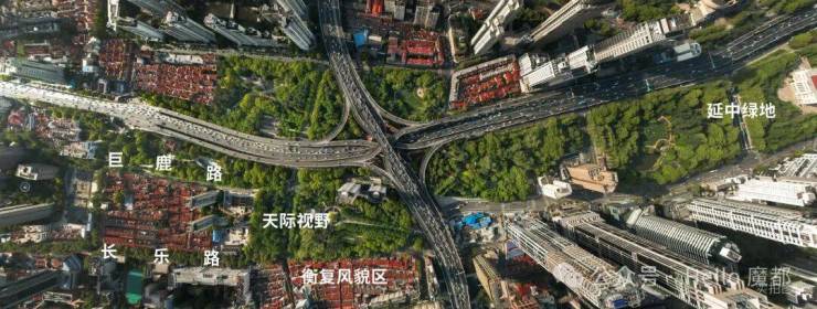 二十三公顷延中绿地广场公园,上千栋衡复风貌的红色建筑屋顶;东望陆家嘴的城市天际,西瞰市中心繁华光景——