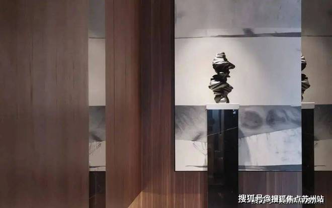 入户处做了到顶的门套,入户门加高之后更显气派。进门又是隐形收纳柜,可移动的装饰立柱营造出归家仪式感。