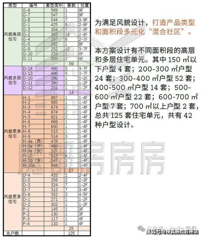 共计125套,42种户型设计。