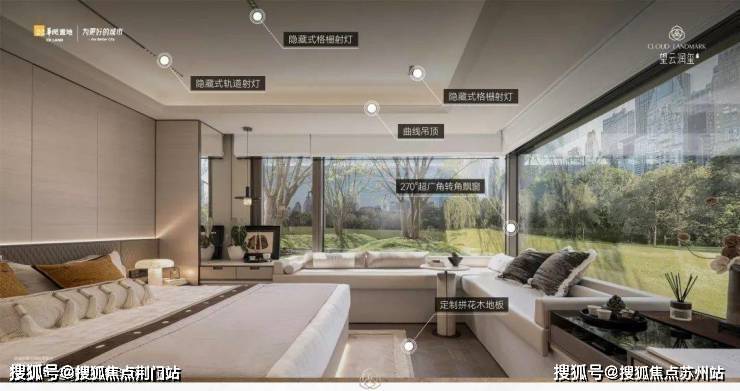 高层住宅区采用整体抬升设计,拥有着独树一帜的瞰景视野,可谓“栋栋王座、户户揽云”。纵享IMAX级视野与园林风光,凭栏远眺,园景交辉。